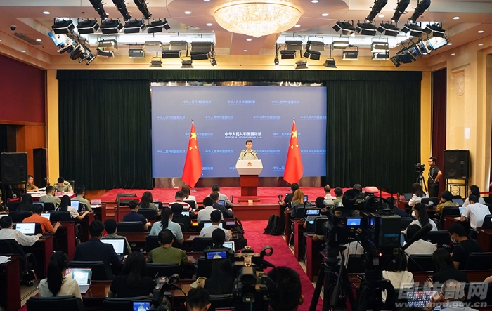 8月31日下午,國防部舉行例行記者會,國防部新聞局局長、國防部新聞發(fā)言人吳謙大校答記者問。孫悅 攝