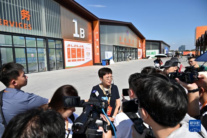 8月31日,工作人員向媒體介紹服貿(mào)會(huì)首鋼園區(qū)情況。