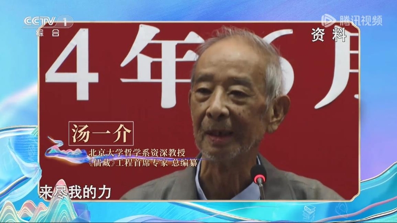 節(jié)目中,王博教授為同學(xué)們講述了《儒藏》編纂人湯一介先生皓首窮經(jīng)匯聚《儒藏》的過程。他表示,在做《儒藏》編纂工作時(shí),湯一介已有76歲高齡,那時(shí)他已被查出來肝硬化,病情一直反復(fù)。當(dāng)時(shí)有人問他,為什么要編《儒藏》?