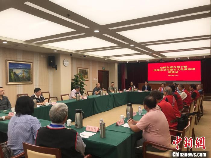 9月1日,臺(tái)灣少數(shù)民族北京內(nèi)蒙古文化參訪團(tuán)一行15人在北京開展參訪交流,了解中華民族燦爛悠久的歷史與文化,就民族區(qū)域自治制度、兩岸少數(shù)民族交流合作等議題,與中華全國臺(tái)灣同胞聯(lián)誼會(huì)進(jìn)行座談。圖為參訪團(tuán)與全國臺(tái)聯(lián)座談交流。中新網(wǎng)記者 陳建新 攝