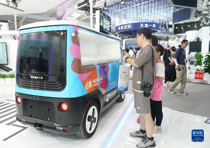 這是9月3日在首鋼園拍攝的一款自動(dòng)配送車。