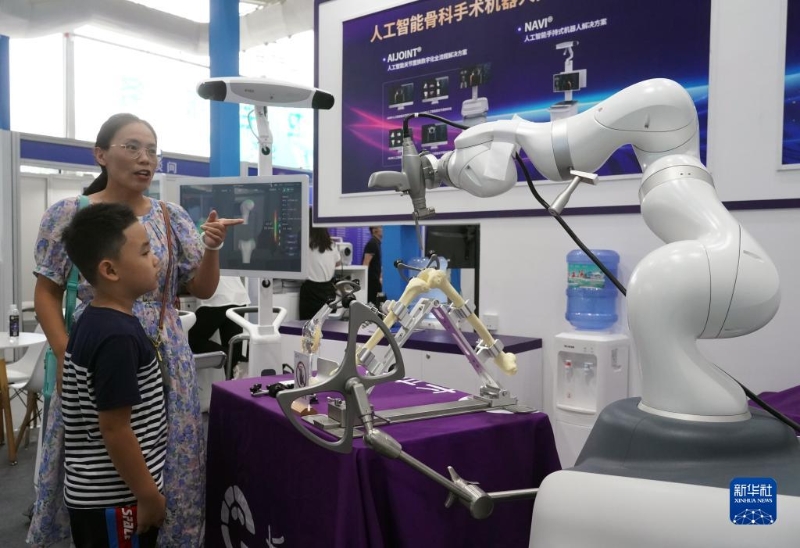 這是9月3日在首鋼園拍攝的一款人工智能骨科手術(shù)機(jī)器人。