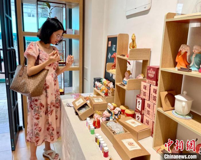 移居澳大利亞30多年的陳炳欽在汕頭小公園潮汕文藝人才一條街購買大吳泥塑產(chǎn)品。他說,“我們這一代人提起大吳泥塑是無人不知,無人不曉,小時候看的這些生動的形象深深印在記憶里,沒想到現(xiàn)在大吳泥塑能跟隨時代的腳步做出這么多新品?!?/p>