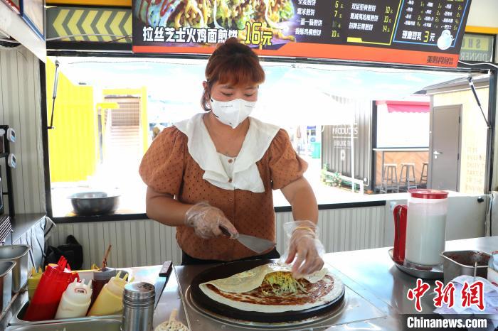 煎餅攤攤主蘇海亮便是一名返鄉(xiāng)創(chuàng)業(yè)人員。今年5月他辭掉了在浙江溫州的模具制造工作,與妻子一起在銅都青春SHOW網(wǎng)紅夜市租了攤位賣煎餅?!耙故刑幵谛吕铣菂^(qū)結(jié)合部,人流量可觀穩(wěn)定,生意挺不錯(cuò)的,一個(gè)月有1萬多元的收入?!碧K海亮說,如今的工作既能照顧到家里,收入還穩(wěn)定,他很滿意。