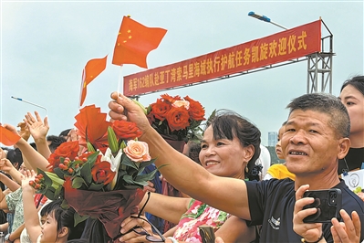 護(hù)航編隊(duì)官兵家屬代表在碼頭迎接。