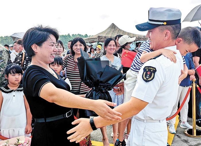 艦旗獵獵,汽笛聲聲。8月29日10時(shí),海軍第43批護(hù)航編隊(duì)在圓滿完成護(hù)航、聯(lián)演、撤離我在蘇丹人員和訪問任務(wù)后,順利返回軍港。軍地領(lǐng)導(dǎo)以及數(shù)百名官兵和家屬代表在軍港碼頭列隊(duì)歡迎。 楊 捷攝影報(bào)道