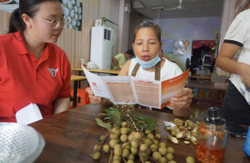 燈塔服務(wù)隊(duì)隊(duì)員進(jìn)行現(xiàn)場(chǎng)宣講,用粵語為當(dāng)?shù)鼐用窠榻B國家資助和助學(xué)貸款政策。