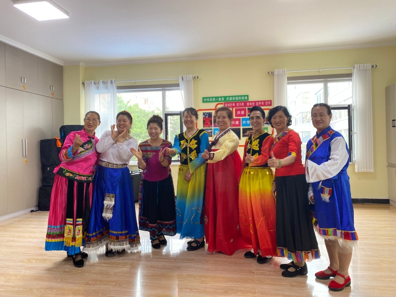在社區(qū)活動室,記者看到社區(qū)舞蹈隊的居民正在舞蹈排練廳排練著民族舞蹈。據(jù)丹英社區(qū)黨委書記王淑清介紹,舞蹈隊的成員們還是社區(qū)的志愿者,經(jīng)常主動參加社區(qū)的多種活動。她們關(guān)愛獨居老人,上門給行動不便的老人買菜做飯,不分民族互相幫扶。在丹英社區(qū),居民們已把社區(qū)當成自己的家,共同維護、建設(shè)。