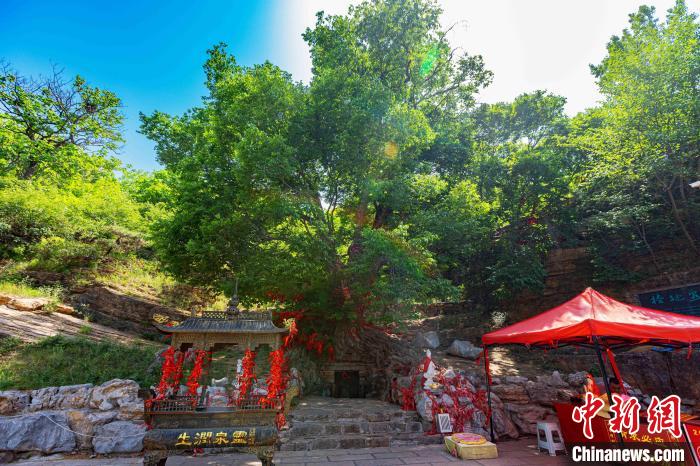 圖為位于山東省濟(jì)南市長清區(qū)萬德街道靈巖村的青檀樹。該樹樹齡約180年,高23m、胸圍3.5m,樹形優(yōu)美,冠型大覆蓋面積廣,樹根部包裹一泉,取名為“檀抱泉”,泉水清澈甘甜且常年水流不斷。(資料圖片攝于2023年5月15日)濟(jì)南市園林和林業(yè)綠化局供圖