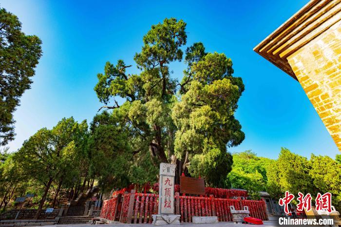 圖為位于山東省濟(jì)南市柳埠街道四門塔景區(qū)的側(cè)柏。該樹高約15m、胸圍5.8m,樹齡約1500年。四門塔建于隋朝,是中國現(xiàn)存最早的石塔,塔旁植有這株古柏。該樹生有九大主枝,九頂蒼秀,人稱“九頂松”,與古塔相輝映成“古塔松風(fēng)”之景,是濟(jì)南十六景之一。(資料圖片攝于2023年5月15日)濟(jì)南市園林和林業(yè)綠化局供圖