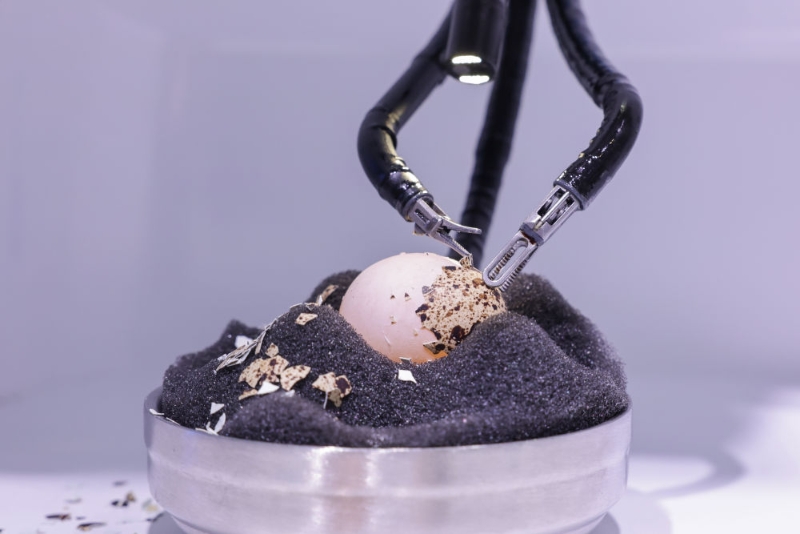 展館內(nèi),北京術(shù)銳機器人股份有限公司帶來的單孔腔鏡手術(shù)機器人,吸引眾多參觀者駐足。