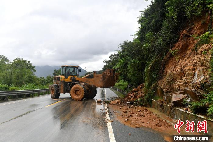 記者從福州市區(qū)驅(qū)車沿著國道G355閩侯段一路前行,看到道路兩側(cè)多處發(fā)生塌方,鏟車和應急搶險人員正在處理交通問題。