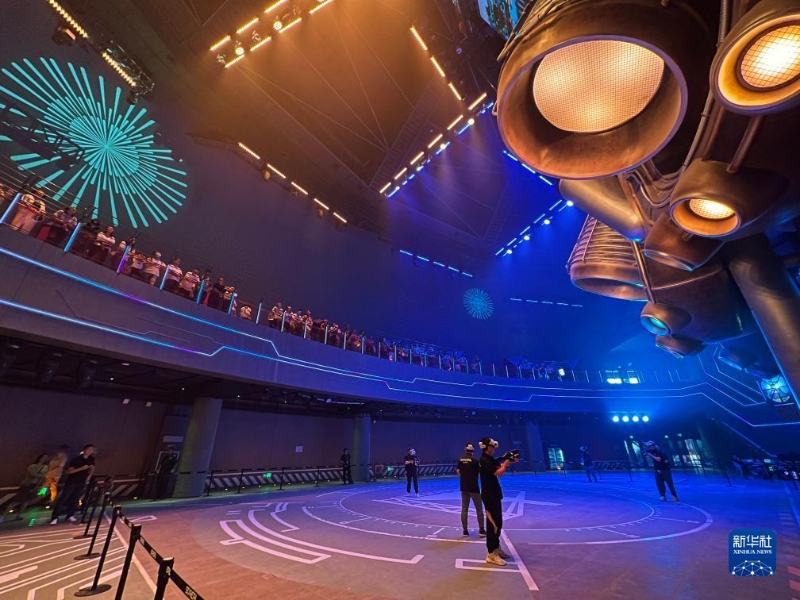 9月5日,在服貿(mào)會(huì)首鋼園區(qū)首鋼一高爐SoReal元宇宙樂(lè)園內(nèi),游戲玩家向觀眾展示VR競(jìng)技游戲。