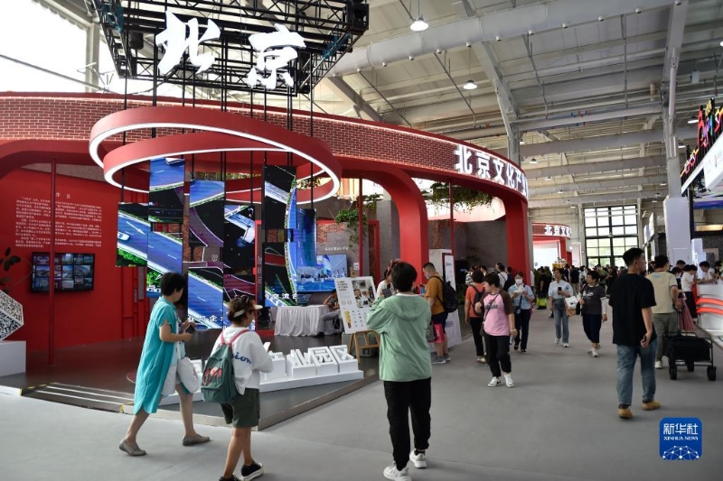 這是9月5日在服貿(mào)會首鋼園區(qū)拍攝的文旅服務(wù)專題展區(qū)北京文化產(chǎn)業(yè)園展位。