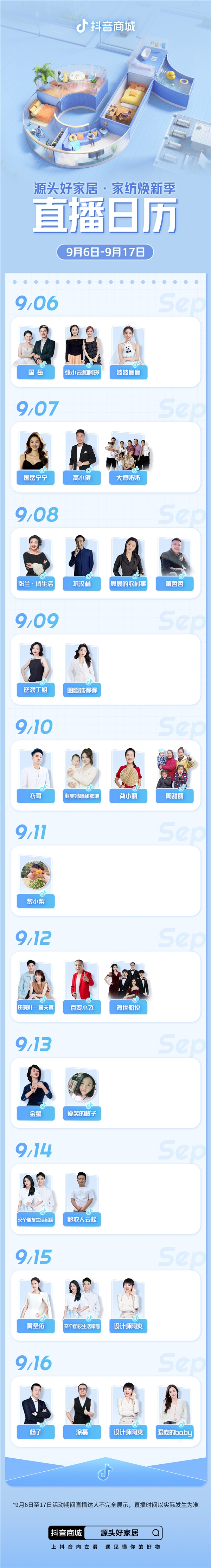 9月6日-17日期間,黃圣依、楊子、衣哥、交個朋友生活家居、逆襲丁姐、田亮葉一茜夫妻、國岳、小風子老板娘、設(shè)計師阿爽等多位抖音頭部電商達人將在南通家紡產(chǎn)業(yè)帶進行溯源直播,共同助力南通家紡優(yōu)質(zhì)產(chǎn)品走向全國市場。無論是套件、芯類還是其他家居品類的好物,都將在達人直播間與用戶見面。上抖音搜索“源頭好家居”,即可參與活動,甄選優(yōu)質(zhì)家居好物。