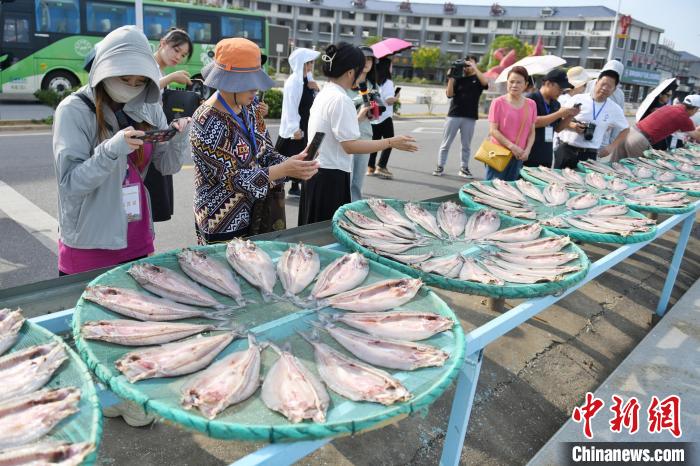 9月10日,參加“行走中國(guó)·2023年海外華文媒體高層岳陽(yáng)行”的12國(guó)華媒代表走進(jìn)六門閘社區(qū),探訪當(dāng)?shù)赝瞬稘O民上岸后的新生活。圖為錢糧湖六門閘風(fēng)干魚。 劉曼 攝