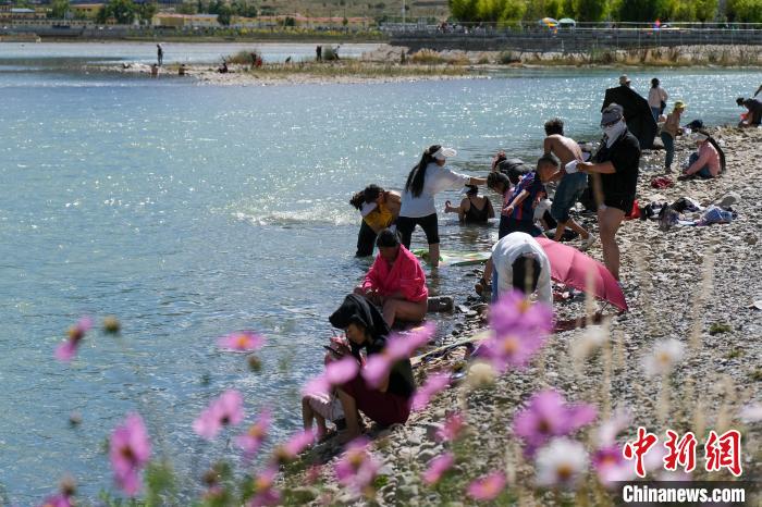 9月10日,在西藏拉薩河畔過(guò)傳統(tǒng)沐浴節(jié)的高原民眾。中新社記者 江飛波 攝