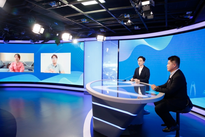 三位臺籍教師做客中國新聞網(wǎng)《青聽·兩岸》欄目。中新網(wǎng)記者 李霈韻 攝