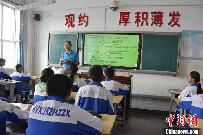 資料圖為吳永祥在上英語(yǔ)課。海晏縣教育局供圖