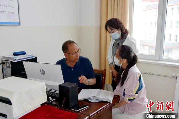資料圖為吳永祥為學(xué)生和家長(zhǎng)提供高考志愿填報(bào)指導(dǎo)。海晏縣教育局供圖