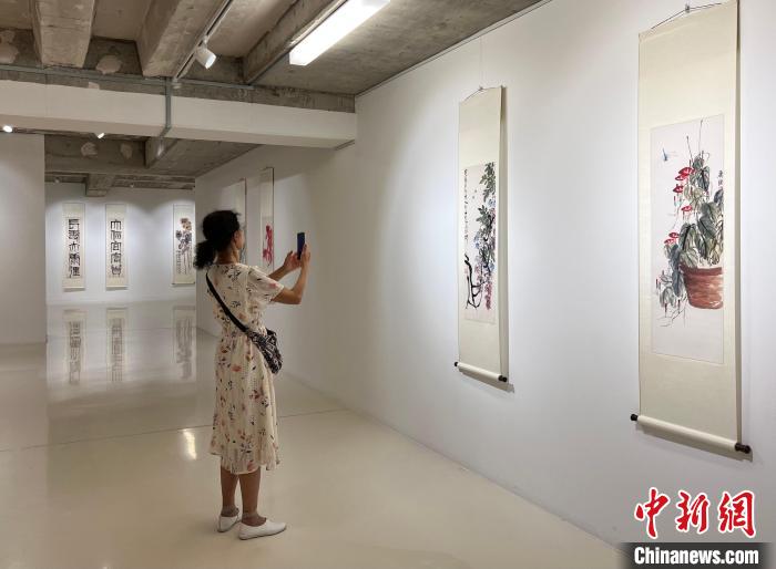 圖為觀眾在拍攝展覽畫(huà)作留念。中新網(wǎng)記者 馬秀秀 攝