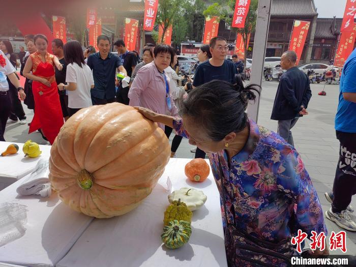 現(xiàn)場展出的大南瓜引游客關(guān)注。王斌田攝