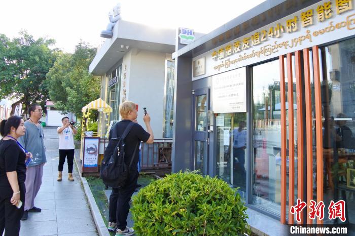 9月1日至8日,由云南省人民政府臺(tái)灣事務(wù)辦公室主辦的兩岸新媒體人滇西行聯(lián)合采訪活動(dòng)在云南舉行。圖為9月5日,兩岸新媒體人在云南省瑞麗市探訪中緬胞波友誼24小時(shí)智能圖書(shū)館?!≈行戮W(wǎng)記者 羅婕 攝