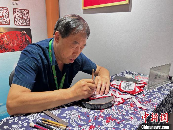 圖為非遺傳承人正在萬壽宮歷史文化街區(qū)非遺匠心館內(nèi)展示非遺技藝。吳思瑜 攝
