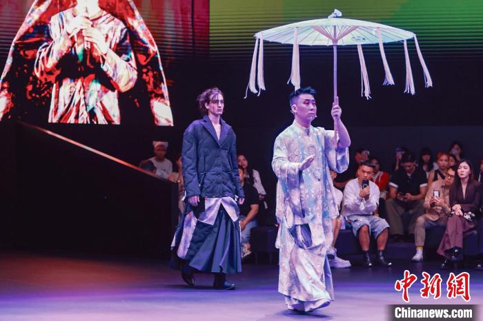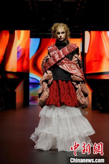 “FASHION FUSING 大灣區(qū)聯(lián)合時裝秀”現(xiàn)場。圖為北京師范大學(xué)珠海分校設(shè)計學(xué)院學(xué)生作品之一。 Fashion Farm Foundation 供圖
