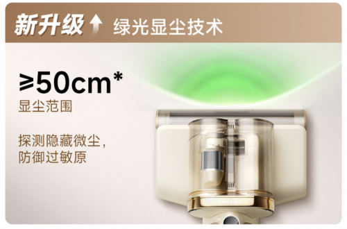 行業(yè)首次搭載綠光顯塵技術(shù),肉眼可視隱藏在暗處的微小微塵