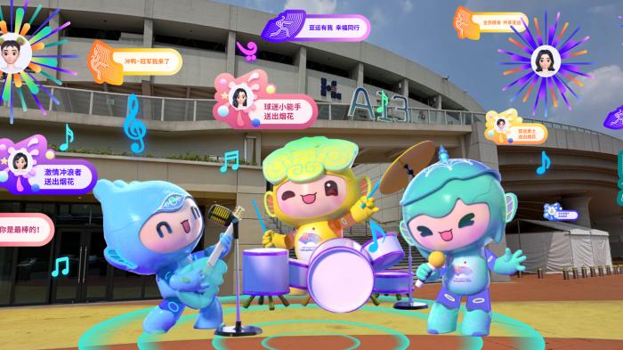 屆時,觀眾在場館內外的指定地點,通過手機掃描,就能與亞運吉祥物“隔空見面”,享受他們的熱情歡迎;在場館群中亦可通過實用的AR實景導航導覽,體驗一鍵直達目的地的高效穿梭服務。位于場館內的AR眼鏡和智能屏互動體驗,更是能夠帶領觀眾沉浸式觀看杭州文化內容、快捷查詢賽事信息,還可以和吉祥物互動、合影,感受亞運文化的同時,留下自己專屬美好的“杭州韻”記憶。