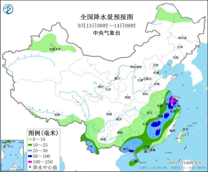 全國降水量預(yù)報圖(9月12日08時-13日08時)