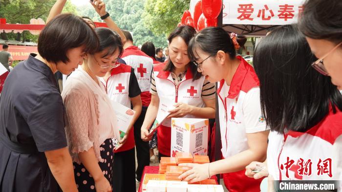 9月11日,紅十字志愿者們介紹紅十字公益項目。張若冰 攝
