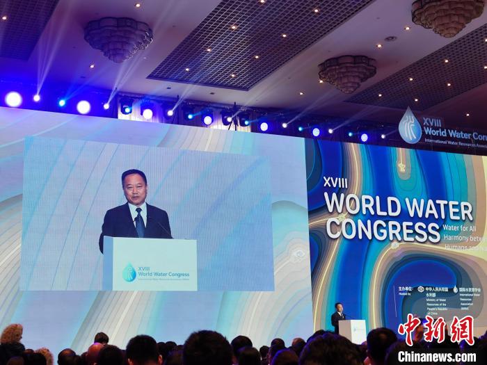 9月11日,中國水利部部長李國英在北京出席第18屆世界水資源大會開幕式并作主旨報告。 中新社記者 陳溯 攝