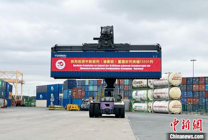 2022年7月11日,中歐班列(重慶)第一萬列重箱折列抵達(dá)杜伊斯堡港接車儀式在杜伊斯堡港碼頭舉行。中新社記者 馬秀秀 攝