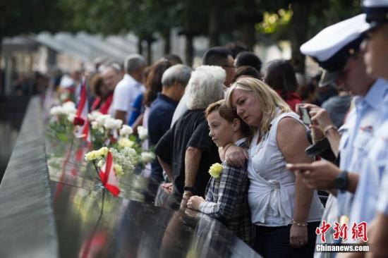 資料圖:當(dāng)?shù)貢r間2019年9月11日,民眾在紐約世貿(mào)遺址前寄哀思。 中新社記者 廖攀 攝