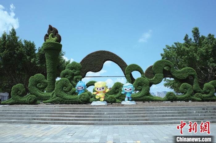 在溫州市區(qū)年輪廣場,園林工人們正忙著修飾綠雕造型。據(jù)介紹,該綠雕長18米,高7米,由1.2萬余盆的花鏡植物及草花搭配鋼架結(jié)構(gòu),通過以綠植為筆,空間為紙,繪出高聳的火炬搭配翻涌的浪花及飄舞的彩帶,亞運(yùn)會(huì)吉祥物宸宸、琮琮、蓮蓮擺放其間,將團(tuán)結(jié)、拼搏的亞運(yùn)精神與勇立潮頭、乘風(fēng)破浪的溫州精神相串聯(lián)。