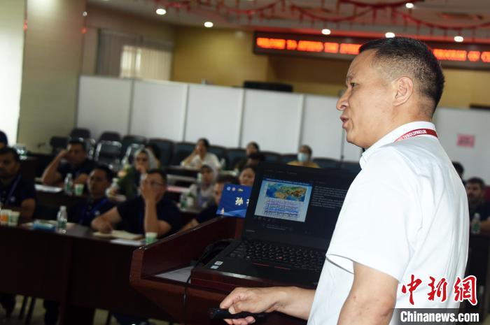 9月12日,2023“一帶一路”氣候環(huán)境變化國際培訓(xùn)班在西安開班,中國科學(xué)院地球環(huán)境研究所所長孫有斌研究員給學(xué)員授課。中新網(wǎng)記者 孫自法 攝