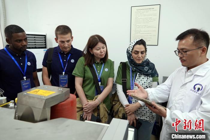 9月12日,2023“一帶一路”氣候環(huán)境變化國際培訓(xùn)班在西安開班,“班主任”譚亮成研究員在實(shí)驗(yàn)室向部分學(xué)員講授石筍樣品與古氣候相關(guān)研究。中新網(wǎng)記者 孫自法 攝