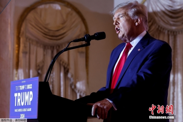 當(dāng)?shù)貢r間2022年11月15日,美國前總統(tǒng)特朗普在佛羅里達州海湖莊園發(fā)表演講,正式宣布將參加2024年美國總統(tǒng)大選。