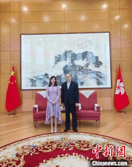 中央人民政府駐香港特別行政區(qū)聯(lián)絡(luò)辦公室主任鄭雁雄(右)與廣東高等國際金融與法律研究院院長葉紫瑩(左)會面。受訪者供圖