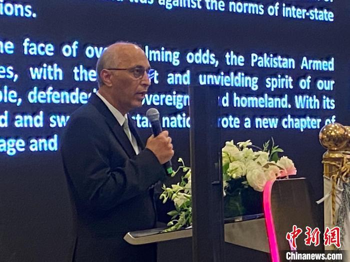 圖為巴基斯坦駐華大使莫因·哈克發(fā)表致辭。薄雯雯 攝