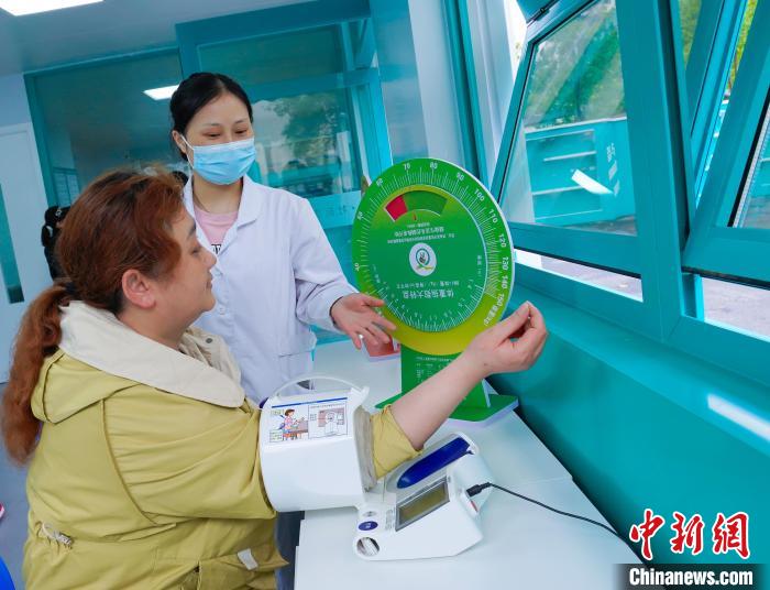 居民在“社區(qū)盒子”里測(cè)量血壓。宜昌城發(fā)集團(tuán)供圖