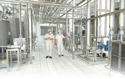“生產(chǎn)設(shè)備來自中國和德國,當(dāng)時用了40多節(jié)車廂才把設(shè)備都運到這里,組成自動化全封閉生產(chǎn)線?!睏罱苤钢喙S大門不到百米的鐵軌說,如今,公司年產(chǎn)駱駝奶粉480噸。