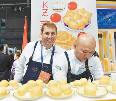 8月17日,在新疆烏魯木齊舉行的2023(中國)亞歐商品貿(mào)易博覽會上,來自哈薩克斯坦的廚師制作該國美食。新華社記者 趙 戈攝