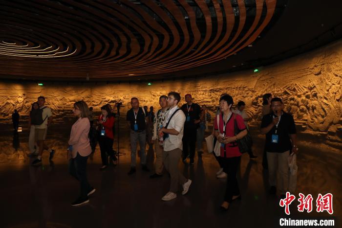 圖為中外媒體人在鄭州商都遺址博物院參觀。李新華 攝