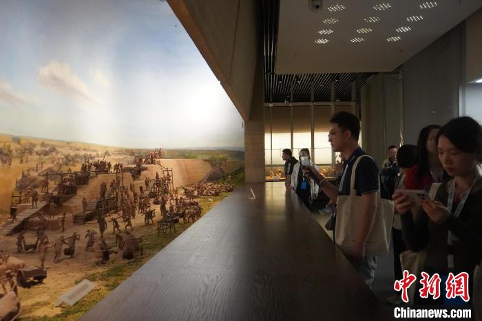 圖為媒體團(tuán)成員在鄭州商都遺址博物院了解商代城墻建造過(guò)程。韓章云 攝