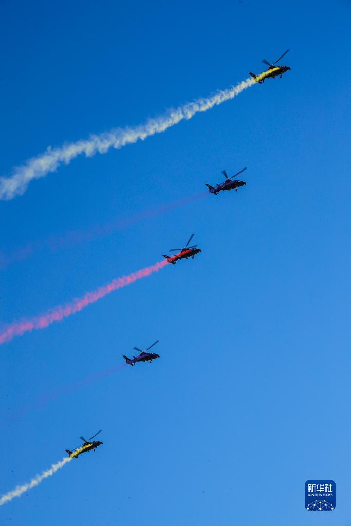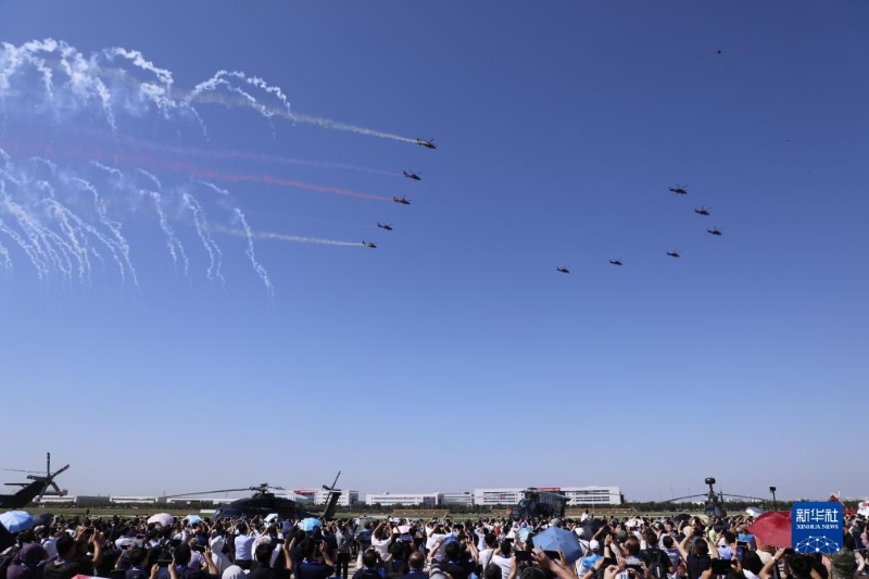 當日,第六屆中國天津國際直升機博覽會在天津市空港經濟區(qū)開幕。陸軍“風雷”飛行表演隊在開幕式上進行飛行表演,先后向觀眾演示三機芭蕾、尾追螺旋、四機開花等8個課目的特技飛行動作,展示了陸軍航空兵部隊轉型建設和實戰(zhàn)化訓練成效。