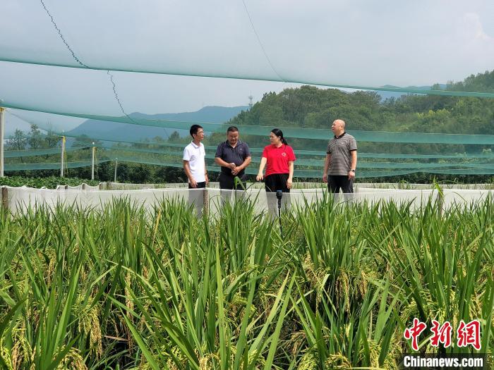 圖為德安縣委統(tǒng)戰(zhàn)部副部長周桂珍(右二)在稻蛙種養(yǎng)產(chǎn)業(yè)園調(diào)研稻蛙種養(yǎng)情況。 王昊陽 攝