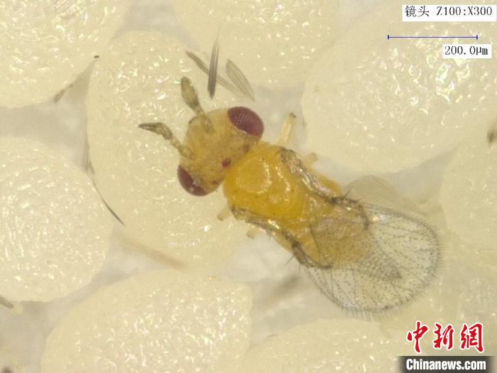 松毛蟲赤眼蜂是一種體形非常小的卵寄生蜂。張超然 攝